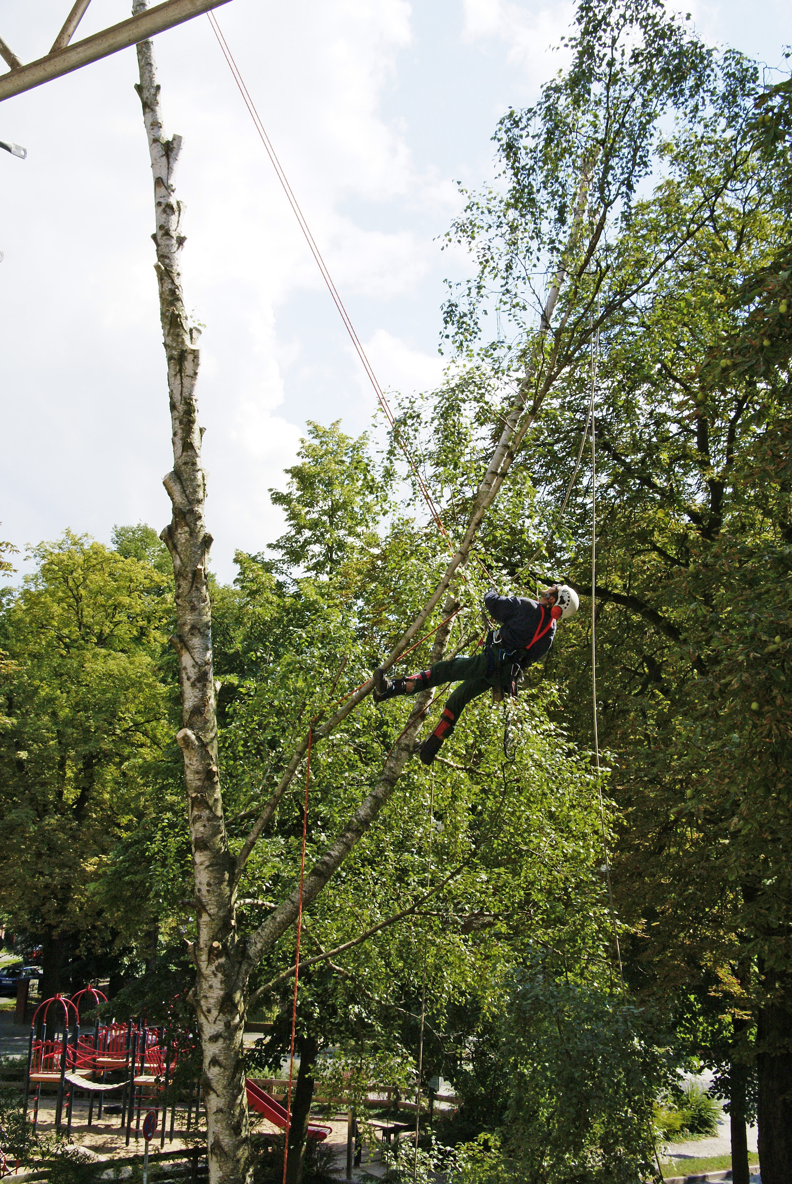 Baumfällung mit Seilklettertechnik.